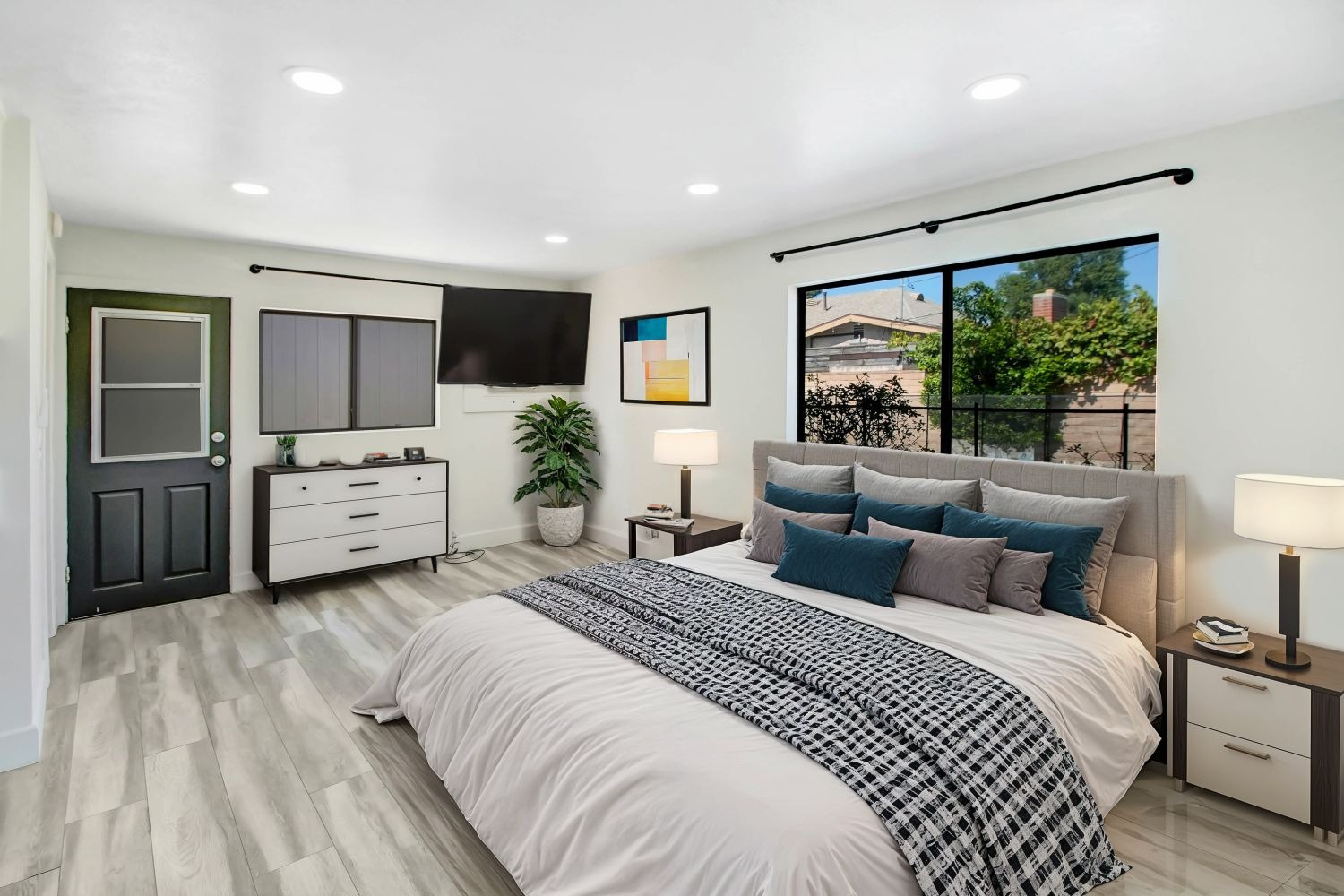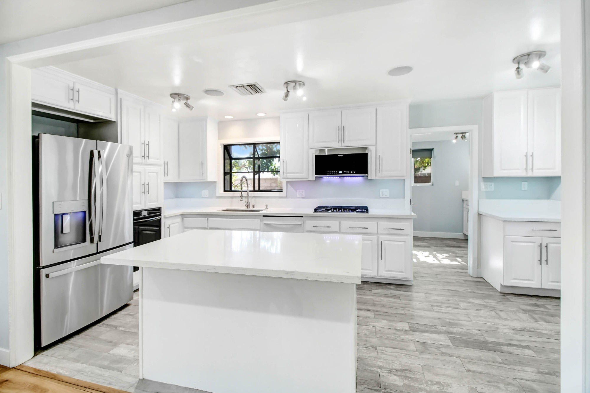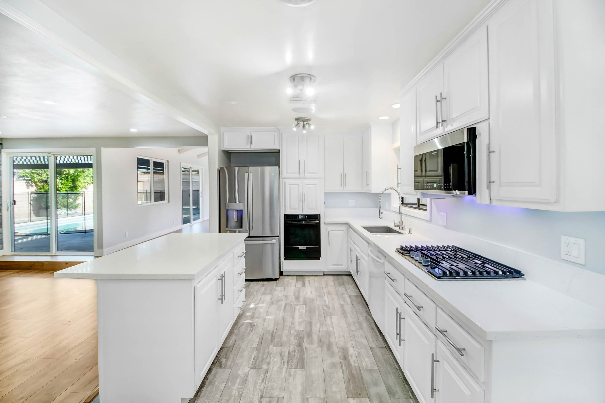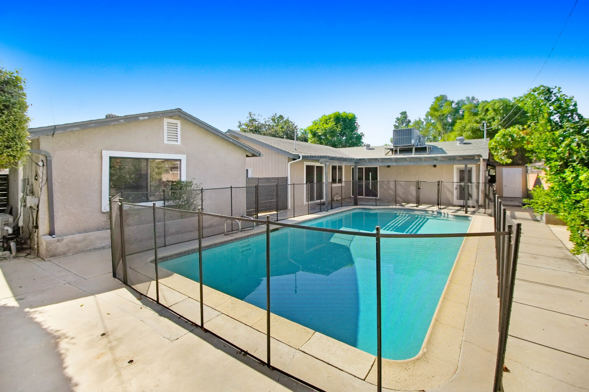 Step into this beautifully remodeled 4-bedroom, 2.5-bathroom residence with a detached ADU, perfectly positioned on a spacious CORNER lot in the prestigious Granada Hills Charter School district. This exceptional property offers the ultimate combination of modern luxury, family-friendly features, and income potential, making it a must-see. As you arrive, the meticulously landscaped front yard with eco-friendly artificial grass sets the tone for the elegance that awaits. Inside, the main house boasts a thoughtfully designed open floor plan, perfect for both relaxed living and vibrant entertaining. The chef’s kitchen is a true centerpiece, showcasing brand-new quartz countertops, a French door refrigerator, oven, gas cooktop, and built-in microwave. The oversized center island provides ample space for meal prep or casual dining, while the adjacent laundry room opens to a private outdoor retreat—ideal for morning coffee or gardening. The great room, with soaring ceilings and a wet bar, flows effortlessly into the outdoor entertainment area. Here, you’ll find a sparkling, fenced saltwater pool that invites relaxation and fun, whether hosting gatherings or enjoying a quiet afternoon. The luxurious primary suite is your personal sanctuary, featuring dual closets, radiant heated flooring, and a spa-inspired steam shower. Three additional bedrooms, each with ceiling fans, offer space for family, guests, or a home office. What truly sets this property apart is the detached ADU with its own address. Fully equipped with an all-electric kitchen, quartz countertops, a washer/dryer combo, and a private outdoor space, the ADU offers incredible flexibility. Use it as a rental to generate extra income, a home office, or a comfortable space for extended family members—it’s your choice! With two covered carport spaces and a location on a tranquil street, this home offers a rare opportunity to enjoy upscale living while making a savvy investment in one of the most desirable neighborhoods. Don’t miss out on this exceptional property that combines style, functionality, and endless potential. Schedule your private tour today and envision the possibilities! (*Property is virtually staged.)