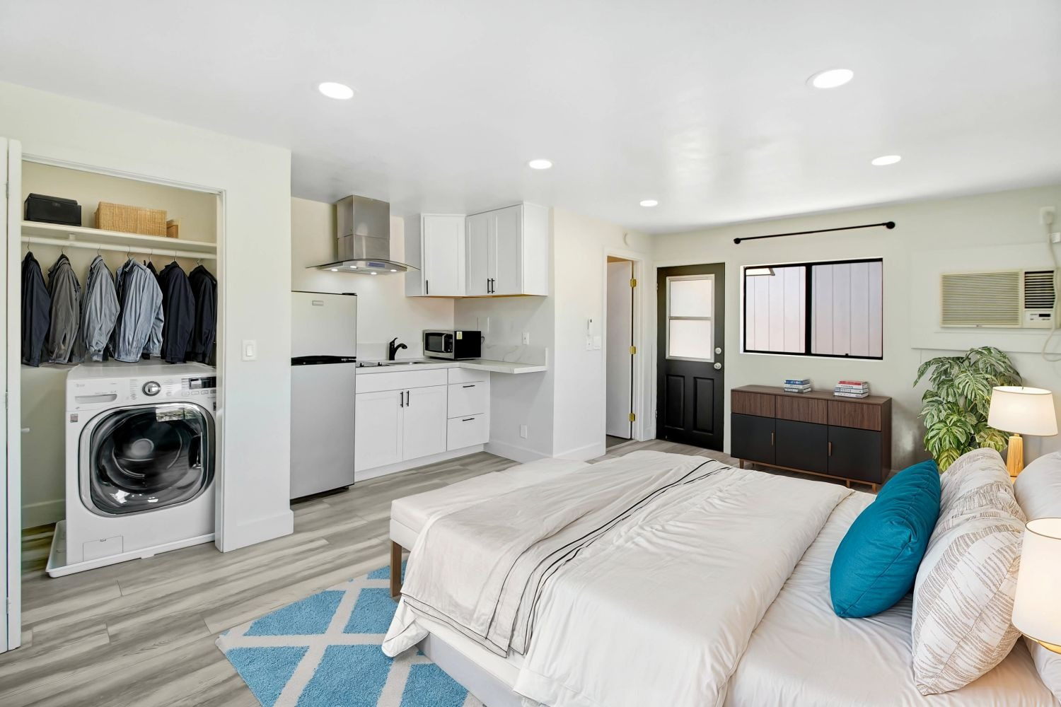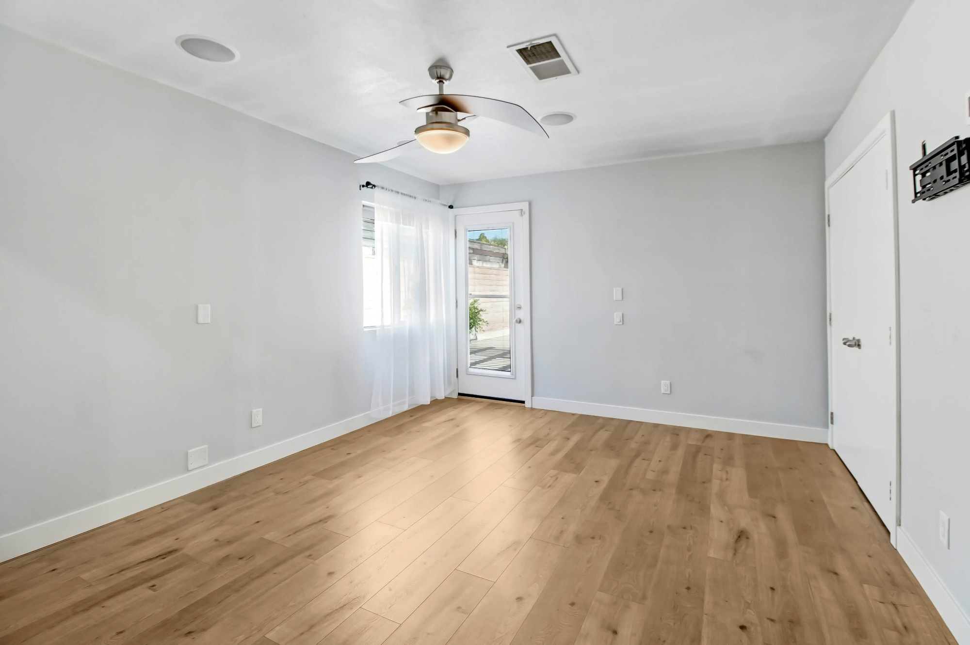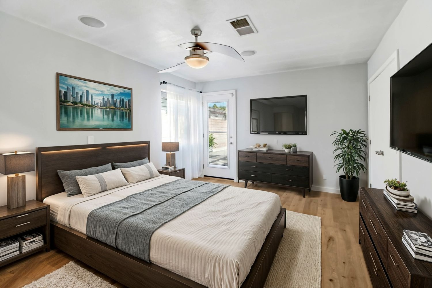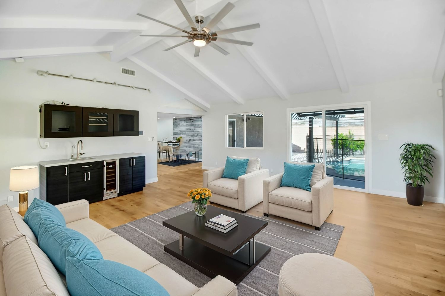 Step into this beautifully remodeled 4-bedroom, 2.5-bathroom residence with a detached ADU, perfectly positioned on a spacious CORNER lot in the prestigious Granada Hills Charter School district. This exceptional property offers the ultimate combination of modern luxury, family-friendly features, and income potential, making it a must-see. As you arrive, the meticulously landscaped front yard with eco-friendly artificial grass sets the tone for the elegance that awaits. Inside, the main house boasts a thoughtfully designed open floor plan, perfect for both relaxed living and vibrant entertaining. The chef’s kitchen is a true centerpiece, showcasing brand-new quartz countertops, a French door refrigerator, oven, gas cooktop, and built-in microwave. The oversized center island provides ample space for meal prep or casual dining, while the adjacent laundry room opens to a private outdoor retreat—ideal for morning coffee or gardening. The great room, with soaring ceilings and a wet bar, flows effortlessly into the outdoor entertainment area. Here, you’ll find a sparkling, fenced saltwater pool that invites relaxation and fun, whether hosting gatherings or enjoying a quiet afternoon. The luxurious primary suite is your personal sanctuary, featuring dual closets, radiant heated flooring, and a spa-inspired steam shower. Three additional bedrooms, each with ceiling fans, offer space for family, guests, or a home office. What truly sets this property apart is the detached ADU with its own address. Fully equipped with an all-electric kitchen, quartz countertops, a washer/dryer combo, and a private outdoor space, the ADU offers incredible flexibility. Use it as a rental to generate extra income, a home office, or a comfortable space for extended family members—it’s your choice! With two covered carport spaces and a location on a tranquil street, this home offers a rare opportunity to enjoy upscale living while making a savvy investment in one of the most desirable neighborhoods. Don’t miss out on this exceptional property that combines style, functionality, and endless potential. Schedule your private tour today and envision the possibilities! (*Property is virtually staged.)